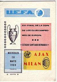 The 1969 European Cup Final was a football match held at the Santiago Bernabéu, Madrid, on 28 May 1969, that saw Milan of Italy play against Ajax of the Netherlands to determine who would be the champions of Europe that season. Ajax made history by becoming the first Dutch side to reach the final, but they were beaten by their Italian opponents 4-1.