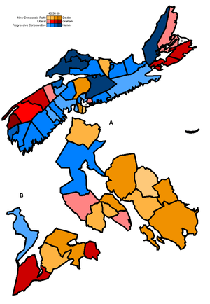 | Riding map of Nova Scotia showing winning parties. | |||||||||||||||||||||||||||||||||||||||||||||||||||||||
