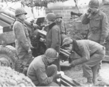 On 31 December, the Germans launched a major offensive in southern France, called Operation Nordwind, and managed to gain ground against the Seventh United States Army, and the First French Army. In order to cut off the American held town of Haguenau, the Wehrmacht needed to encircle the position in a pincer move. However, their offensive would grind to a halt once they reached the positions of the 42nd Infantry Division.[1] On the night of 24 January 1945, the second to last day of the German counterattack, the 222nd Infantry Regiment would see its first major combat in the face of a determined and experienced enemy. The G.I.'s were dug in in fighting positions in the Ohlugen Forest looking towards the Forest of Haguenau, where thick foliage and a dense low-lying fog both concealed their positions and obscured the Germans' movements. Facing the green Americans of the 222nd Infantry were elements of the 25th Panzergrenadier Division, the 47th Volksgrenadier Division, and the 7th Fallschirmjäger Division.[1]