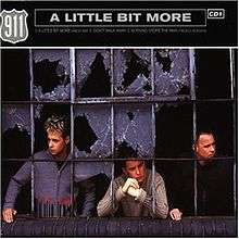 In 1998, English boy band 911 recorded their own version of "A Little Bit More" for their third studio album, There It Is (1999). It was released on 11 and 15 January 1999 in the United Kingdom and Ireland, respectively, and went on to become one of their most successful singles, debuting at number one on the UK Singles Chart on 17 January 1999,[5] becoming their only number-one single.[6] It also charted at number seven on the Irish Singles Chart,[7] the band's only single ever to chart in Ireland, and number 46 in New Zealand.