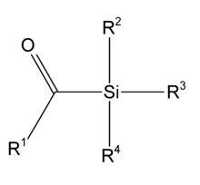 Acylsilanes are a group of chemical compounds sharing a common functional group with the general structure R(CO)-SiR3. Acylsilanes are starting compounds in the Brook rearrangement with vinyl lithium compounds to silyl enol ethers .
