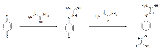 Ambazone can be obtained in a two step synthetic method, reacting 1,4-benzochinone with aminoguanidine and thiosemicarbazide.[2][3]