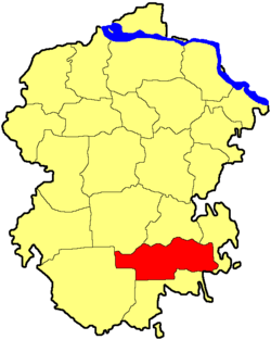 Batyrevsky District (Russian: Ба́тыревский райо́н; Chuvash: Патăрьел районĕ) is an administrative[1] and municipal[2] district (raion), one of the twenty-one in the Chuvash Republic, Russia. It is located in the southeast of the republic and borders with Komsomolsky and Ibresinsky Districts in the north, Yalchiksky District in the east, Shemurshinsky District and the Republic of Tatarstan in the south, and with Alatyrsky District in the west. The area of the district is 944 square kilometers (364 sq mi).[3] Its administrative center is the rural locality (a selo) of Batyrevo.[1] Population: 38,620 (2010 Census);[4] 41,769 (2002 Census);[8] 44,243 (1989 Census).[9] The population of Batyrevo accounts for 14.1% of the district's total population.[4]