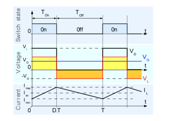 Therefore, it can be seen that the energy stored in L increases during on-time as increases and then decreases during the off-state. L is used to transfer energy from the input to the output of the converter.