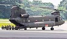 In February 2007, the Royal Netherlands Air Force became the first international customer, ordering six CH-47Fs, expanding their fleet to 17.[72] On 10 August 2009, Canada signed a contract for 15 extensively modified and upgraded CH-47Fs for the Royal Canadian Air Force, later delivered in 2013–14 with the Canadian designation CH-147F.[11][73] On 15 December 2009, Britain announced its Future Helicopter Strategy, including the purchase of 24 new CH-47Fs to be delivered from 2012.[74] Australia ordered seven CH-47Fs in March 2010 to replace its six CH-47Ds between 2014 and 2017.[75][76] In late 2015, Australia has sought permission to order three more CH-47Fs.[77] In September 2015 India approved purchase of 15 CH-47F Chinooks.[78] On 7 November 2016, Singapore announced that the CH-47F would replace its older Chinooks, which had been in service since 1994. This would enable the Republic of Singapore Air Force to meet its requirements for various operations, including Search and Rescue (SAR), Aeromedical Evacuation (AME), and Humanitarian Assistance and Disaster Relief (HADR) operations.[79]