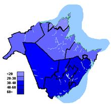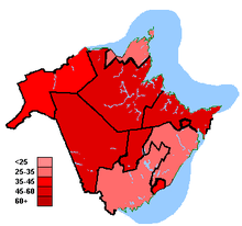 New Brunswick results in federal elections are divided among geographical and linguistic lines: The Liberals fare better in the predominantly francophone eastern and northern sections of the province, while the anglophone south and west has historically tended to favour the Conservatives. In 1993, Saint John was one of only two ridings in the country to go Progressive Conservative, electing Elsie Wayne. The Conservatives improved their seat count in each election from 2004 to 2011, until the Liberals swept New Brunswick (along with the rest of Atlantic Canada) in the 2015 election.