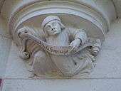 Several sculptures decorate the façade. One finds first of all, on each side of the door, two capitals, one coming from the Château de Bury, made in the Renaissance and brought to Troussay by Louis de la Saussaye; the other was realized in the 19th century by the sculptor Lafargue. On the top of the door, a small stone Virgin, replica of a wooden Virgin from the 15th century preserved at the Château de Cheverny. A small profile of a woman from the Italian Renaissance was encrusted on the left wing at the time of the restoration.