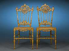The chair was a success and soon many factories opened in Chiavari and surrounding towns. When Gaetano Descalzi died in 1855, about 600 workers were making Chiavari chairs.[1] The chair was praised by Charles Albert of Savoy, Napoleon III,[2] and by the sculptor Antonio Canova.[3]