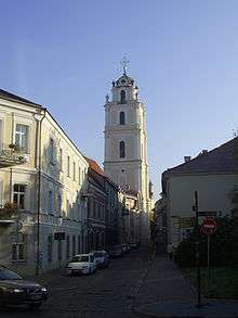 The Church of St. Johns, St. John the Baptist and St. John the Apostle and Evangelist (Lithuanian: Vilniaus Šv. Jono Krikštytojo ir Šv. Jono apaštalo ir evangelisto bažnyčia) is located at the Old Town of Vilnius, Lithuania and dominates the university (Vilnius University) ensemble. Since the times of the Jesuit Academy professors and students used to pray here, and Vilnius theologians gave sermons. It was a place for performances and disputes, where theses were defended and kings greeted.