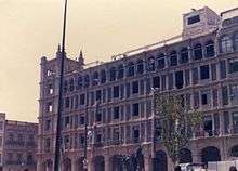 In 1582, a jail was added, the first such in New Spain.[1] Other functions were added to the building such as a coin-making facility, a foundry and residences.[4] This building was destroyed, along with the National Palace in the famine uprising in 1692 .[1] As the building burned, its archives were saved by Carlos de Sigüenza who, with the help of friends and paid servants threw them out of the windows as the building burned, saving records going back to 1524[5] In 1714, viceroy Fernando de Alencastre, 1st Duke of Linares ordered the building reconstructed. Work began in 1720 under viceroy Baltasar de Zúñiga, 1st Duke of Arión, who managed to have the portals built. The rest of the building was completed in 1724 under viceroy Juan de Acuña, marqués de Casafuerte. The official corn and meat markets located here were abolished and the free market was allowed to take control of these commodities. This resulted in a bustling market in what was the Alley of the Diputación, now 20 de Noviembre. However, these stalls disappeared by 1888.[2]