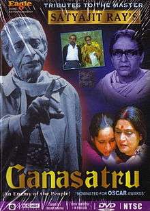 Ganashatru (Bengali: গণশত্রু Gônoshotru "Enemy of the People") is a 1990 Indian film by Satyajit Ray. It is an adaptation of Henrik Ibsen's play An Enemy of the People, and was released under that title in the UK. The cast includes Ray's favourite actor Soumitra Chatterjee, and veteran actors such as Dhritiman Chatterjee, Shubhendu Chatterjee, Manoj Mitra and Ruma Guhathakurta. Ray adapts the play to an Indian setting: a flourishing township in which a temple attracts devotees as well as tourists. When a health problem is discovered Dr Ashok Gupta, played by Soumitra Chatterjee, finds his popularity flagging.