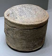 Lidded container with herringbone pattern.