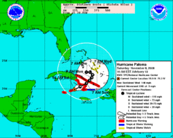 - ↑ Eric S. Blake and Richard J. Pasch (November 6, 2008). Tropical Storm Paloma Discussion Number 5. National Hurricane Center (Report). Miami, Florida: National Oceanic and Atmospheric Administration. Retrieved May 15, 2015.