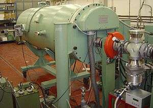 Now that the vapor of the desired has been ionized, they must be removed from the magnetic bottle. To do this, a high voltage is between the hexapoles applied to pull out the ions from the magnetic field.[22] The extraction of the ions, from the chamber, is carried out using an electrode system through a hole in a positively biased plasma chamber.[22] Once the ions have been extracted from the chamber, they are then sent to the cyclotron for acceleration. It is very important that the ion source used is optimal for the experiment being carried out. To perform an experiment in a practical amount of time, the ions provided from the accelerator complex should have the correct desired energy.[22] The quality and stability of the ion beam needs to be considered carefully, due to the fact that only the ions with the correct flight trajectory can be injected in the cyclotron and accelerated to the desired energy.[22]