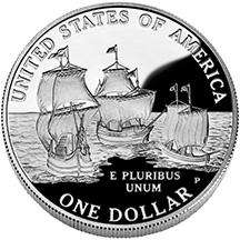 | Design | Depiction of the three ships Susan Constant, Godspeed, and the Discovery which brought the first settlers to Jamestown. Inscriptions: "United States of America", "One Dollar", "E Pluribus Unum" & mint mark 'P' |