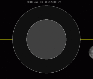 The following simulation shows the approximate appearance of the Moon passing through Earth's shadow. The Moon's brightness is exaggerated within the umbral shadow. The northern portion of the Moon was closest to the center of the shadow, making it darkest, and most red in appearance.