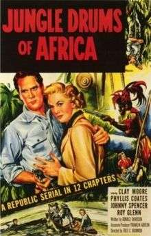 Jungle Drums of Africa is a 1953 12-episode, American serial film, shot in black-and-white, which was an original commissioned screenplay by Ronald Davidson produced by Franklin Adreon and directed by Fred C. Brannon for Republic Pictures. The story is set in Kenya, and involves the efforts of an American uranium processing company's representative and a woman medical missionary, to thwart the efforts of agents of a "foreign power", abetted by a disaffected native witchdoctor, to gain control of a large uranium deposit on lands owned by the latter's tribe. This serial features black American actors in major roles, including that of a college-educated chieftain.