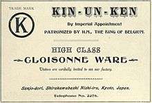 - ↑ "A cloisonné enamel vase By Kin'unken of Kyoto, Meiji Period". Bonhams.com. Retrieved 2016-02-26.