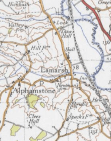 "LAMARSH, a parish, with a village, in the district of Sudbury and county of Essex; adjacent to the river Stour at the boundary with Suffolk, 2½ miles NW of Bures r. station, and 4 SSE of Sudbury."[4]