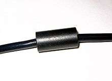 The ring core may also be composed of two separate C-shaped hemispheres secured together within a plastic shell, permitting it to be placed on finished cables with large connectors already installed, that would prevent threading the cable through the small inner diameter of a solid ring.