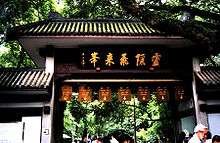 Lingyin Temple (simplified Chinese: 灵隐寺; traditional Chinese: 靈隱寺; pinyin: Língyǐn Sì) is a Buddhist temple of the Chan sect located north-west of Hangzhou, Zhejiang Province, China. The temple's name is commonly literally translated as Temple of the Soul's Retreat. It is one of the largest and wealthiest Buddhist temples in China, and contains numerous pagodas and Budddhist grottoes.