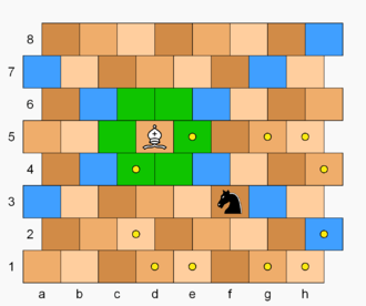 - A bishop moves on diagonals to the sides (four directions), or one step as a rook (six directions).