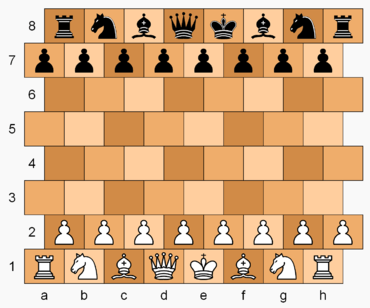 The diagram shows the starting setup. All normal chess rules apply, including conventions for castling either kingside or queenside, a pawn's initial two-step option, en passant captures, promotion, and so on. But the pieces have specially-defined moves.