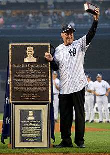 The mayor of Mabton, Washington, declared October 12, 1964 to be "Mel Stottlemyre Day".[15] He was inducted into the Washington State American Legion Baseball Hall of Fame in 2012.[16] At Old-Timers' Day on June 20, 2015, the Yankees dedicated a plaque in Monument Park in Stottlemyre's honor.[17][18]