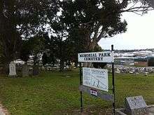- 1 2 3 "History of the Memorial Park Cemetery". Albany Cemetery Board. 2009. Retrieved 3 September 2015.