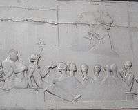 Edward VII statue in Hove/Brighton.- Close-up of one of the relief panels-Apollo Victoria.