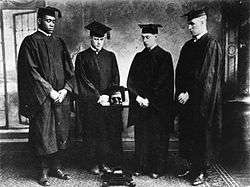 He finished university with four annual oratorical triumphs[35] and varsity letters in multiple sports.[36] His play at end[37] won him first-team All-American selection, in both his junior and senior years. Walter Camp considered him the greatest end ever.[38] Academically, he was accepted into Phi Beta Kappa[39] and Cap and Skull.[40] His classmates recognized him[41] by electing him class valedictorian.[42] The Daily Targum published a poem featuring his achievements.[43] In his valedictory speech, he exhorted his classmates to work for equality for all Americans.[44]