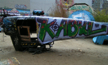 Hassani paints graffiti in Kabul to bring awareness to the war years.[2]