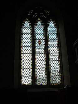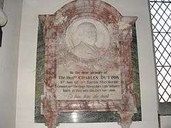 The present Church of England parish church of Saint Mary Magdalene is in the centre of the village. Its bell-tower and spire were built late in the 13th or early in the 14th century.[5] The church is next to Sherborne House, which was built for Thomas Dutton after he bought the manor of Sherborne in 1551.[6] Elizabeth I stayed at the house in 1592.[3] John Dutton had the house re-faced in 1651-53,[7] and James Dutton, 1st Baron Sherborne had alterations made to the church between 1743 and 1776, including the addition of a Doric portico.[3] In 1850-59 John Baron Dutton, 2nd Baron Sherborne had the medieval nave and aisle of the church demolished to allow more light into Sherborne House, and had a new nave and sanctuary built further north.[3][6] The church contains numerous ornate monuments to members of the Dutton family.[3][6] The tower has a ring of six bells.[8] The oldest is medieval; three more were cast in 1653 and the remaining two are 18th-century.[3]