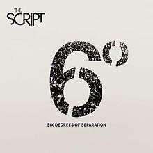 "Six Degrees Of Separation" is a song by Irish pop rock band The Script, taken from their third studio album, #3 (2012). The song was released as the album's second single on 25 November 2012. The track was written by Danny O'Donoghue, Mark Sheehan, Steve Kipner and Andrew Frampton. The music video for "Six Degrees Of Separation" was uploaded to YouTube on 5 November 2012 at a total length of three minutes and fifty-seven seconds.[1] The band performed the song live during Children in Need on 16 November 2012.[2] The band also performed the track live on The Voice of Holland on 7 December 2012, as well as performing "Hall of Fame" with the remaining contestants.