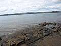 Smooth Island consists of diabase (or dolerite) rock, a subvolcanic intrusion which probably occurred from 56 to 33.9 million years ago during the Eocene epoch of the Cenozoic era.[23] A geological survey identified consolidated brownish fine-grained quartz sandstone occurring on the north east coastline of Smooth Island at approximately 2 metres above sea level, covered by sand. It was said to be similar to the sandstone samples retrieved from South Arm which contained numerous fossils, but no fossils were found in the samples taken from Smooth Island.[24][25] The western aspect of the island contains Dolerite (tholeiitic) with locally developed granophyre, from the Jurassic period.