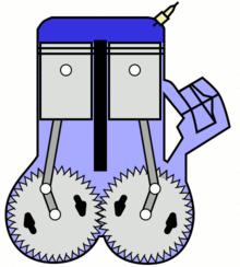- ↑ Diagramatic split-single Fuel-air circulation and the Y-shaped connecting rod.