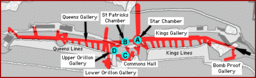 The Northern Defences below the surface. A Star Chamber B St. Patrick's Chamber C Commons Hall D Upper Orillon Gallery | |