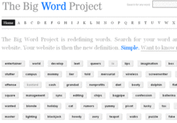 The Big Word Project is a website created by Paddy Donnelly and Lee Munroe, two Masters students from the University of Ulster, Belfast, Northern Ireland. [2] Launched on February 25, 2008, the project is aimed at redefining the English dictionary with websites. Users can buy a word from a list of over 170,000 at $1 a letter and that word is then permanently linked to a URL of their choice.
