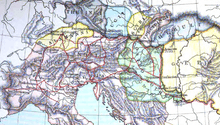 From the sources it is not possible to infer the origin of Turcilingi. The Turcilingi are generally considered to have been a Germanic tribe.[5] It was often assumed that they were an Eastern Germanic people related to the Scirii, or at least connected to the Scirii by special affinity.[6] Nineteenth-century German scholarship supposed that the Turcilingi were neighbours of (or the same people as) the Scirii in the first century, or that they were the royal clan of the Scirii[7] or the Huns. Herwig Wolfram classifies the Turcilingi as a Germanic tribe, and supports the notion that they were the royal clan of the Scirii.[7][8] The more enthusiastic invented a homeland for them straddling the Oder, with the Scirii to the east, the Vandals to the west, and the Rugii to the north. These scholars placed them in the Gothic mouvance. They were identified with the Thuringii by Helmut Castritius and Walter Pohl. Odoacer's father is said to have been a Thuringian in some sources. If this is true, it is possible that he ruled those people, and that Turcilingi is merely a scribal error for Thuringii.