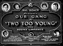 Two Too Young is a 1936 Our Gang short comedy film directed by Gordon Douglas.[2] Produced by Hal Roach and released to theaters by Metro-Goldwyn-Mayer, it was the 147th Our Gang short to be released.