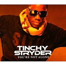 "You're Not Alone" is a song composed by recording artist Tinchy Stryder. The song was released as the fifth and final single from Stryder's second studio album, Catch 22 on 2 November 2009.[1] On the week of the album's release, the track charted at No. 50 in the UK, based mostly on hype around the track which had received its first play on the BBC Radio 1 chart show the previous week. Tinchy Stryder performed the song at the MOBO Awards 2009 on 30 September, it then entered the top 40 on the UK Singles Chart on 10 October 2009 at number 32, next week on 17 October it climbed to number 14 in the UK, it dropped to number 15 in its 3rd week in the UK top 40.[2] The song interpolates "You're Not Alone", a hit in 1997 for the band Olive.[3] Olive claimed in an interview they would hope Tinchy Stryder would return the favour and collaborate with them on a song for their upcoming album.[4] The song samples Leona Lewis' Run which in turn is a cover of the original performed by Snow Patrol.